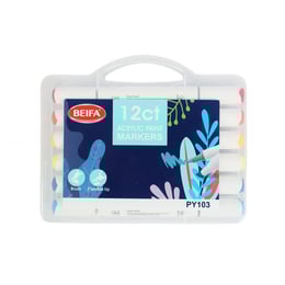 Beifa Маркер Acrylic, двоен, четка и скосен връх, 12 цвята