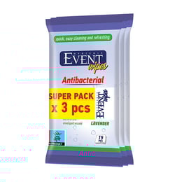 Мокри кърпи Лавандула Event, антибактериални, 3 x 15 броя