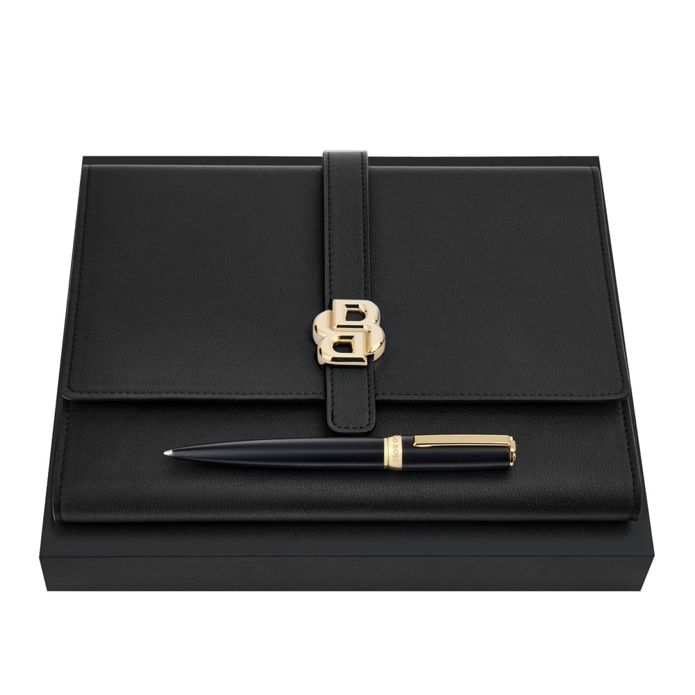 Hugo Boss Комплект химикалка и папка, А5, черно-златисти