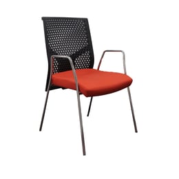 Посетителски стол MJ Omega Black, метална основа, червена седалка, черна облегалка, сглобена мостра