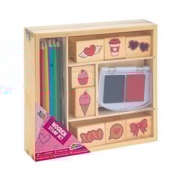 Moxy Комплект дървени печати и цветни моливи, в кутия, розови
