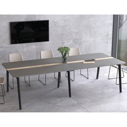 Заседателна маса Narbutas Nova, 3200 x 1640 x 740 mm, правоъгълен плот, ПДЧ 25 mm, перленосив меламин, бял метал, крак тип U