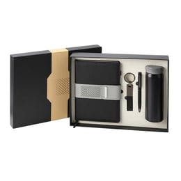 Office 1 Комплект Welcome, тефтер, бутилка, химикалка и ключодържател, в кутия, черен