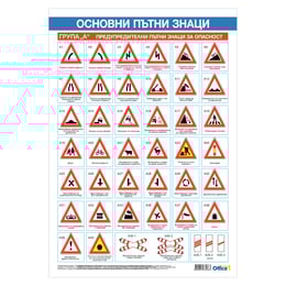 Office 1 Ученическо табло ''Безопасност на движението - основни пътни знаци'', без лайстни, двустранно