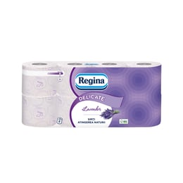 Тоалетна хартия Лавандула Regina, целулоза, трипластова, 135 къса, 8 броя