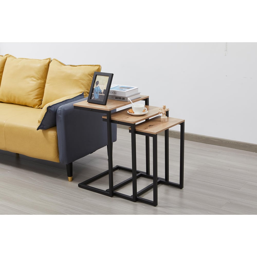 Ниска маса RFG Lisa, правоъгълен плот, плот цвят дъб, ПДЧ, черни метални крака, 3 броя в комплект