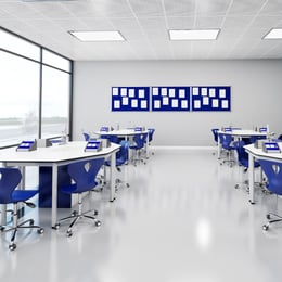 Кабинет по химия и биология RFG Hexa, над VII клас, за 24 ученика, HPL плот, метални крака, бяло-син