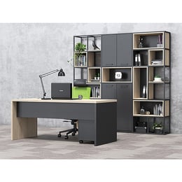 Бюро RFG Elmaz, с шкаф, 1600 х 1400 х 760 mm, ПДЧ 40 mm, австралийски дъб и сиво