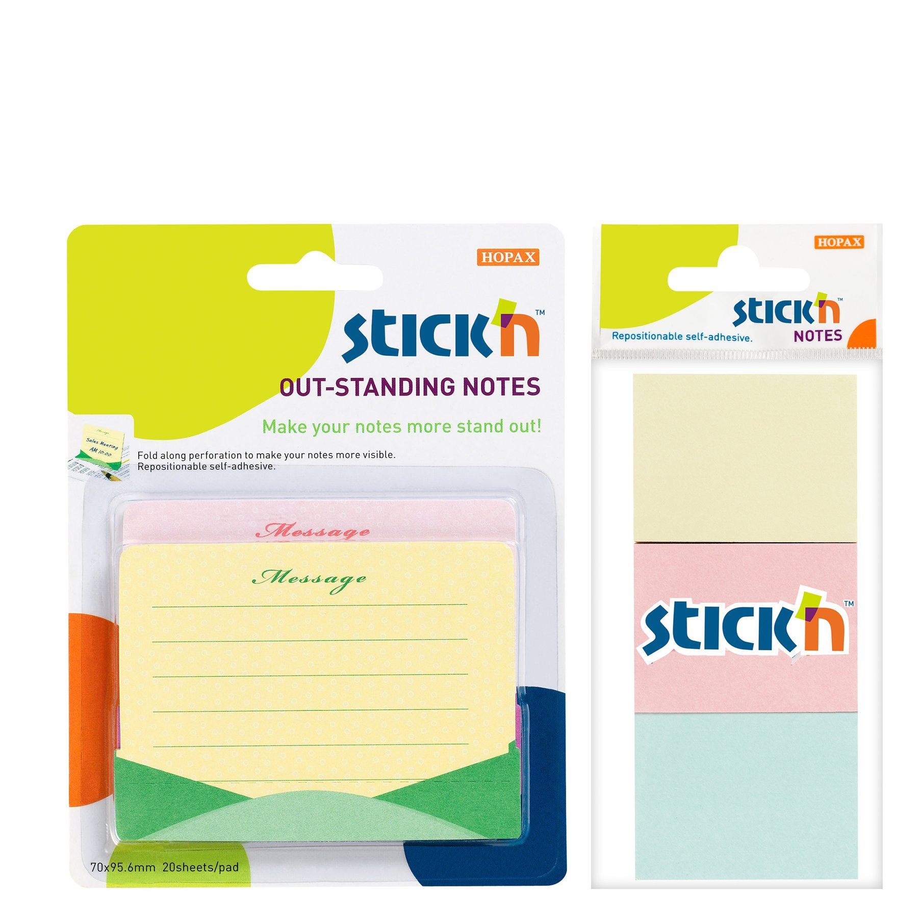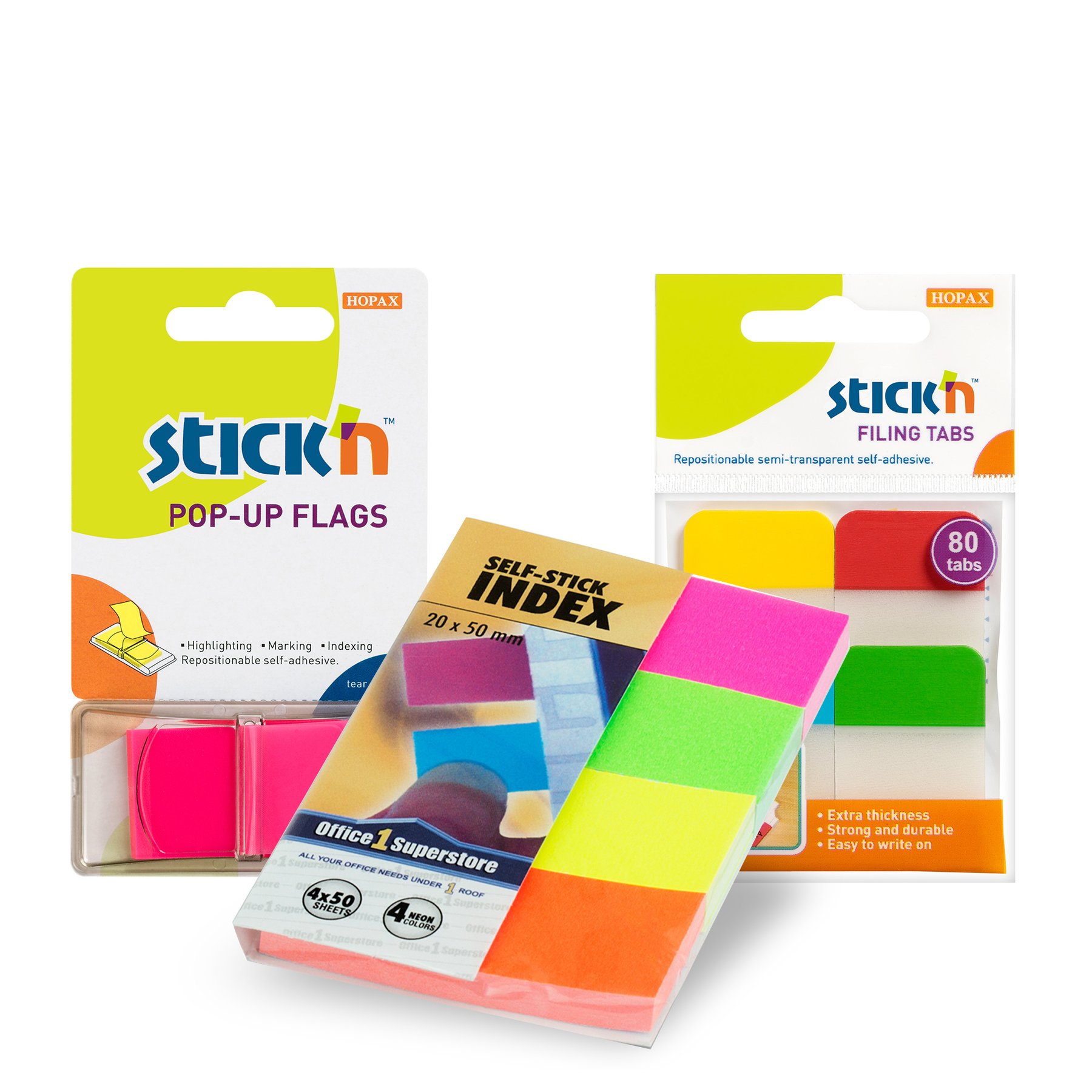 Stick'n Самозалепващи се листчета и индекси, цветни, с черна поставка