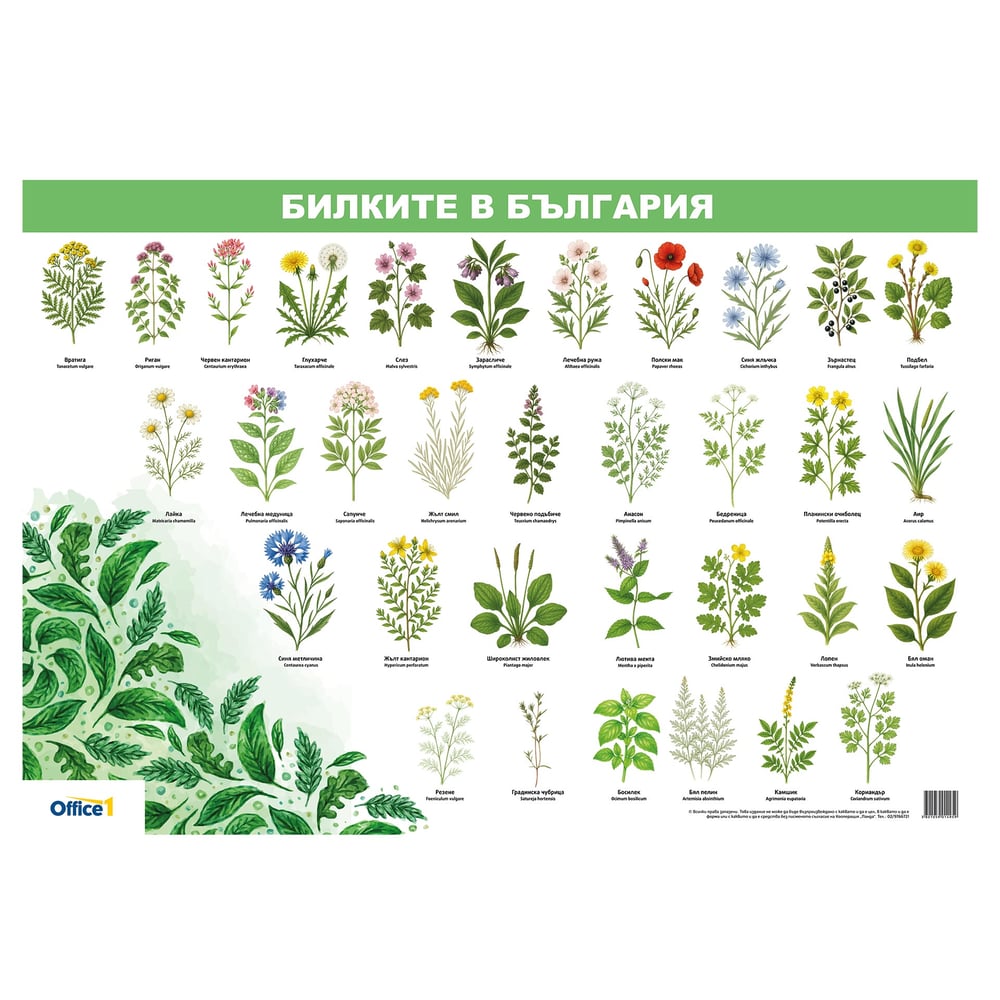 Office 1 Ученическо табло ''Билките в България'', 70 x 100 cm