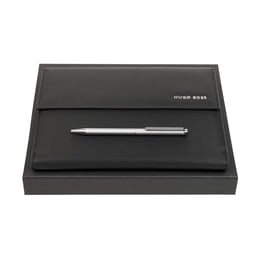Hugo Boss Комплект папка Monogram, А5, черна и химикалка Essential Metal, хром