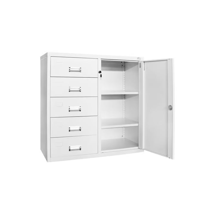 Кардекс RFG, метален, 1 x 5 чекмеджета, с шкаф, 90 х 40 х 90 cm, бял