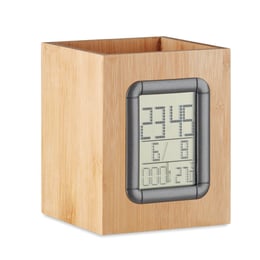 Office 1 Поставка за моливи Top Manila, дървена, с часовник