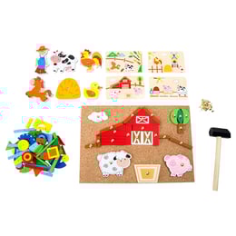 Small Foot Мозайка Ферма, дървена, с чукче, 174 части