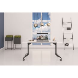 Конферентна маса RFG Flip, мобилна, сгъваема, 160 x 80 x 74 cm, правоъгълен плот, ПДЧ 25 mm, бяла, черни метални крака