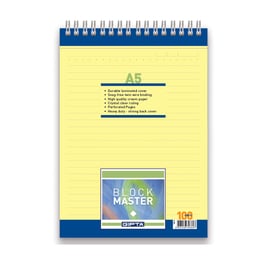 Gipta Block Master Пад, А5, жълт, широки редове, микроперфорация, със спирала, 100 листа