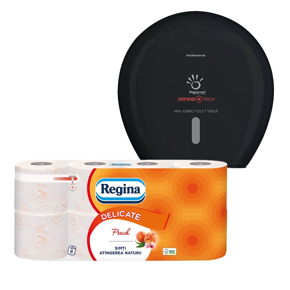 Тоалетна хартия Regina Peach, целулоза, трипластова, 135 къса, 8 броя