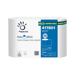 Тоалетна хартия Papernet, Full Tech, целулоза, двупластова, 715 къса, 4 броя, 100.1 m