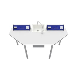 Ученическа маса RFG Hexa, лабораторна, над VII клас, 170 х 140 х 75 cm, синьо-бяла
