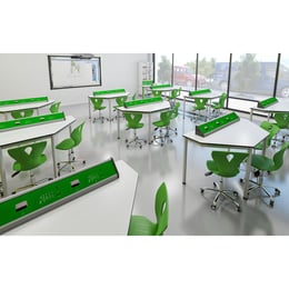 Кабинет по химия и биология RFG Flat, над VII клас, за 24 ученика, HPL плот, метални крака, бяло-зелен