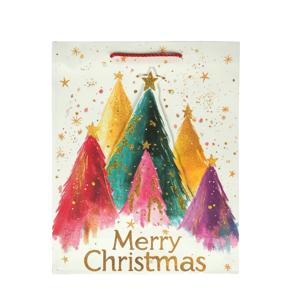 Подаръчна торбичка Merry Christmas - Елхи, коледна, 30 х 40 х 12 cm