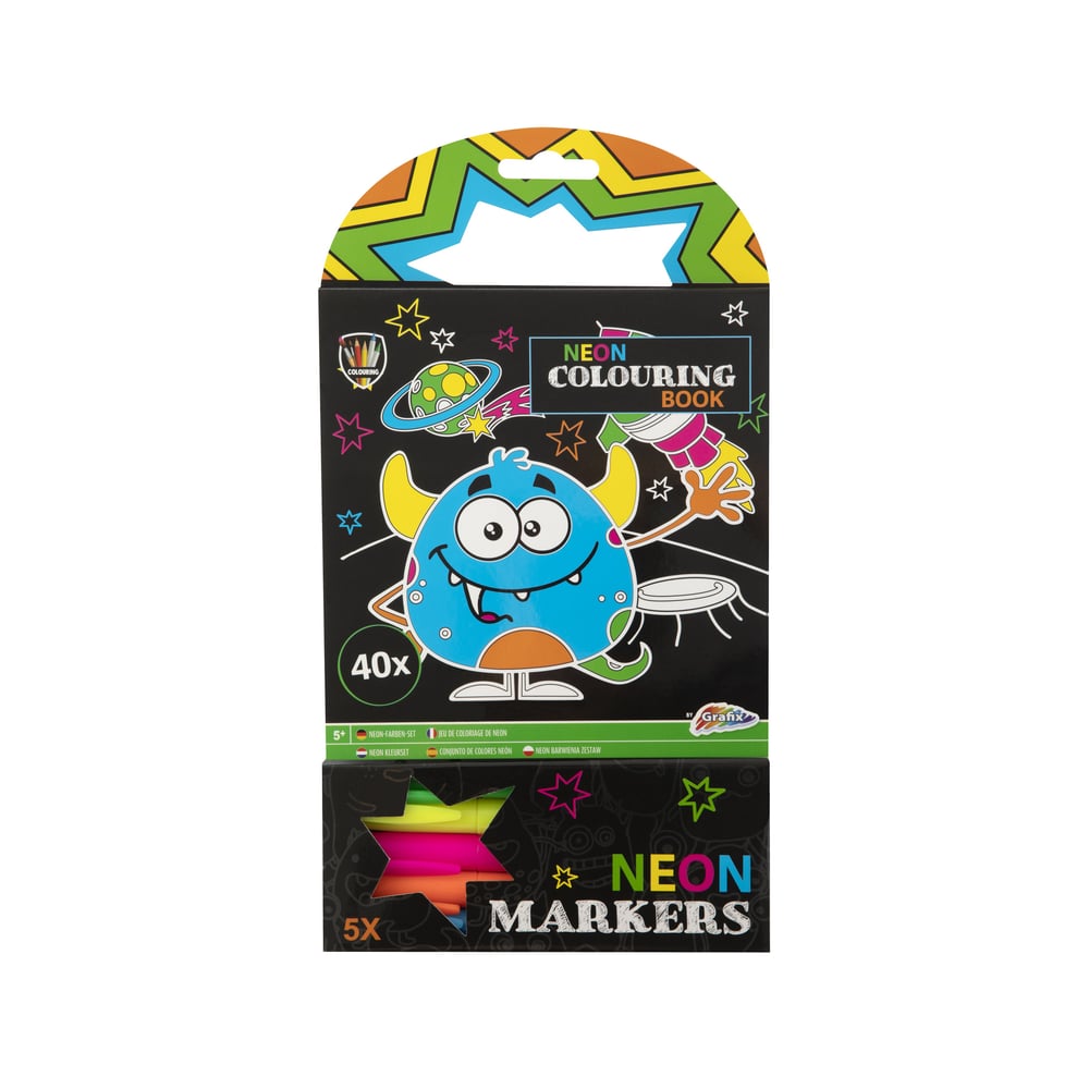 Moxy Книжка за оцветяване Чудовища, неон, с 5 маркера, 40 листа