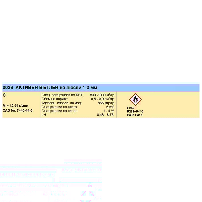 Активен въглен на люспи (C), 1-3 mm.