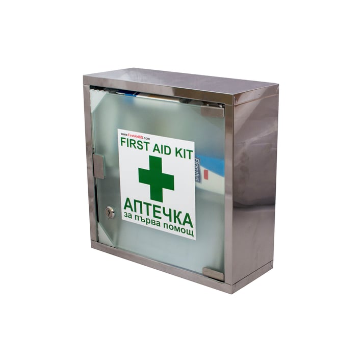 Подходяща за всеки офис и работна площадка, склад или магазин. Закрепва се на стената и е обозначена с международният знак за първа помощ за бързо локализиране в случай на инцидент.