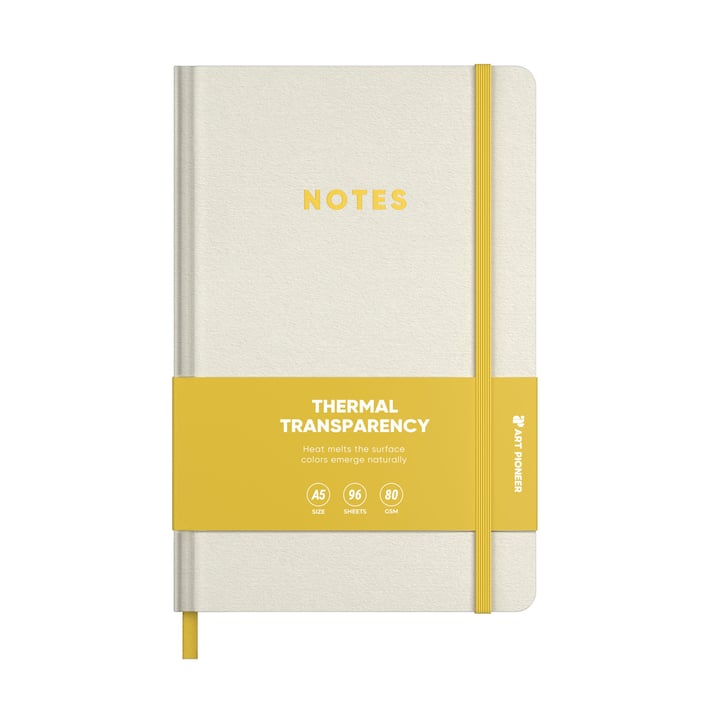 • Бележникът е стилно и функционално решение за ежедневни записки, идеи и планиране. Отличава се с минималистичен дизайн и иновативна корица с термоактивен ефект, която реагира на топлина – при допир или промяна в температурата, повърхността променя своята визия, създавайки фин и елегантен визуален акцент.