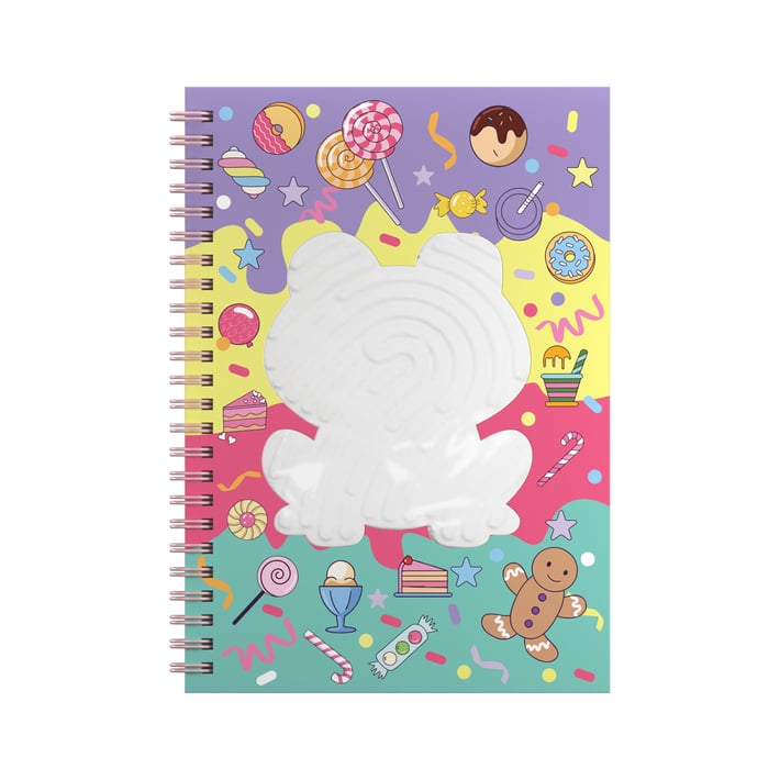 Твърдата корица осигурява стабилност и защита на страниците, а атрактивният й дизайн е допълнен от фигура на жаба, което придава закачлив и отличителен акцент.