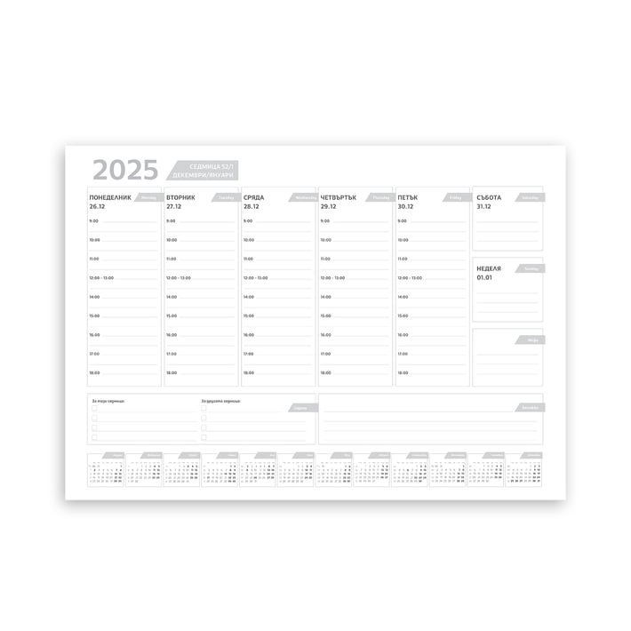 Basic Планер, настолен, персонализиран, за 2026 година A3, 53 листа, едностранен, едноцветен печат
