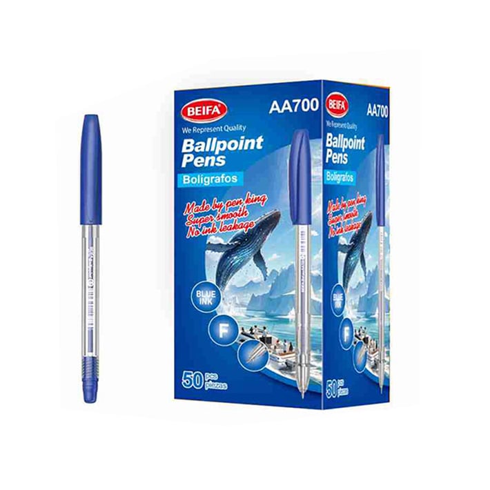 Beifa Химикалка AA700-50B2, 0.7 mm, прозрачна, синьо мастило, 50 броя