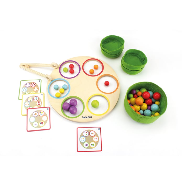 Заниманията за сортиране могат да са предизвикателни и много полезни за децата. Този комплект съчетава няколко различни игри с топчета в два размера и много цветове.