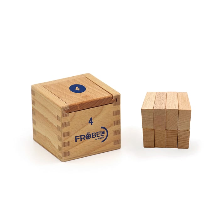 Съдържа 141 дървени части – кубчета, призми, цилиндри.