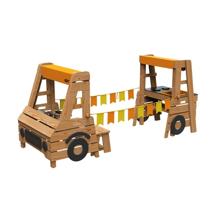 Къмпинг колата предлага на децата възможност за ролева игра сред природата. Там могат да играят няколко деца едновременно. Къмпинг колата може да бъде оборудвана по желание.