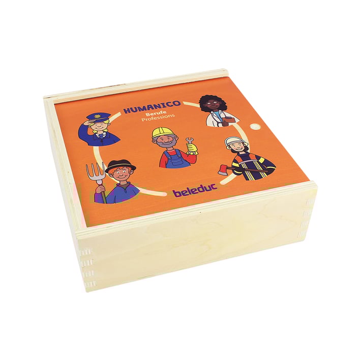 Съдържа 6 кръгли плочки, на които са изобразени професии. Към тях трябва да се съберат по 5 свързани части.