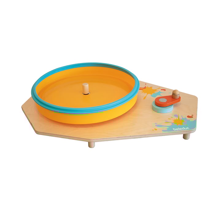 Завъртете манивелата и ще останете изумени от ефектната картина, която ще получите! Благодарение на центробежната сила, боите, които поставите с четка или тубичка, ще се превърнат в уникат.