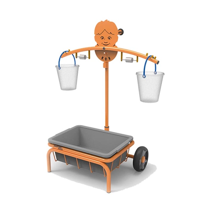 Преместването на везните на детската площадка и на закрито не е проблем благодарение на интегрираната дръжка и колела.