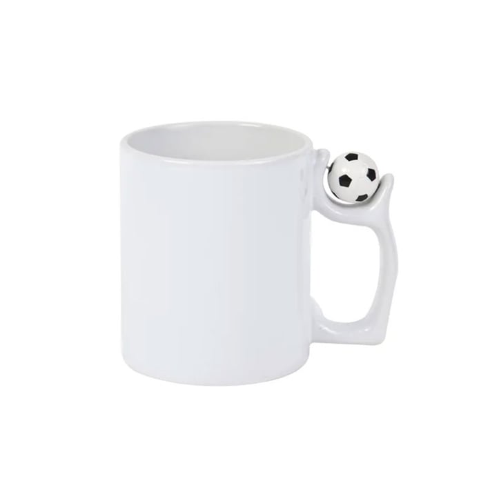 Керамичната чаша с футболна дръжка е оригинален и атрактивен аксесоар както за ежедневна употреба, така и за персонализиране с изображения или лого. Изработена е от бял керамичен материал, което я прави подходяща за сублимационен печат – например със снимки, фирмен знак или тематични графики.Чашата е устойчивa на ежедневна употреба и може да се използва както у дома, така и в офиса или в заведение.Вместимост: 325 ml.