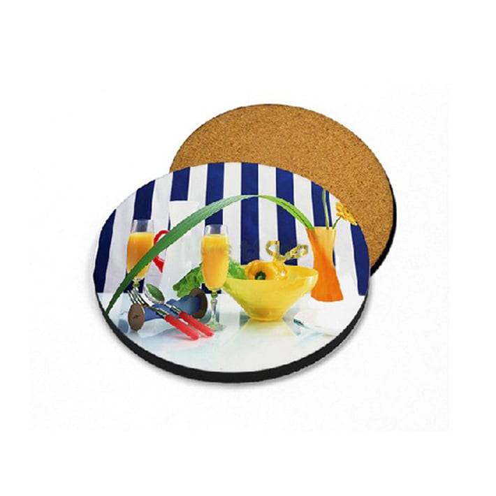 Коркова подложка за чаши под формата на кръг, подходяща за персонализиране чрез сублимация.