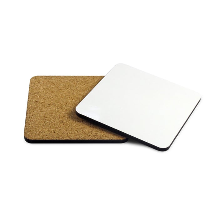 Коркова подложка за чаши под формата на квадрат, подходяща за персонализиране чрез сублимация.