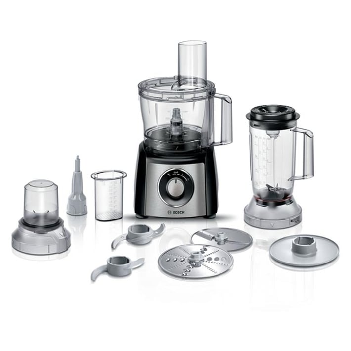 - Повече от 50 функции: настъргване, рязане, шлайфане, смилане и други благодарение на универсалните аксесоари. Повече от 50 функции със миксера, чопъра и ножовете. Търсите ли уред в кухнята, който е добър във всичко и може да замени други уреди? Бързо настъргване на зеленчуци или нарязване плодове, оместване на перфектно тесто за хляб, правене на вкусно смути, нарязване на лук, настъргване на моркови, смилане на кафе на зърна или нарязване на билки, с 50-те си функции хранителният робот не оставя нищо, което да се желае.