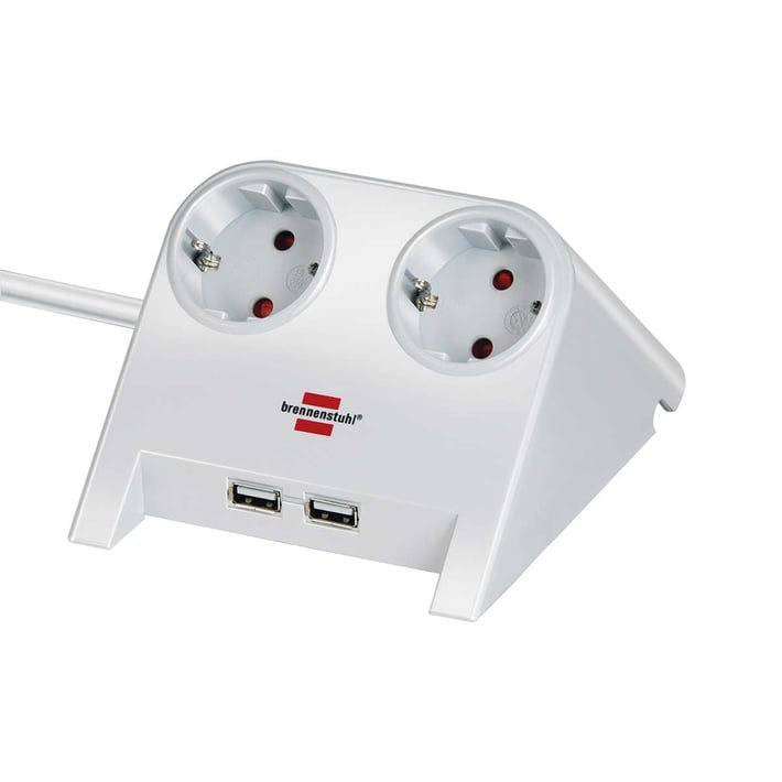 Разклонител Brennenstuhl Desktop-Power, 2 гнезда, 2 x USB, 1.8 m кабел, бял