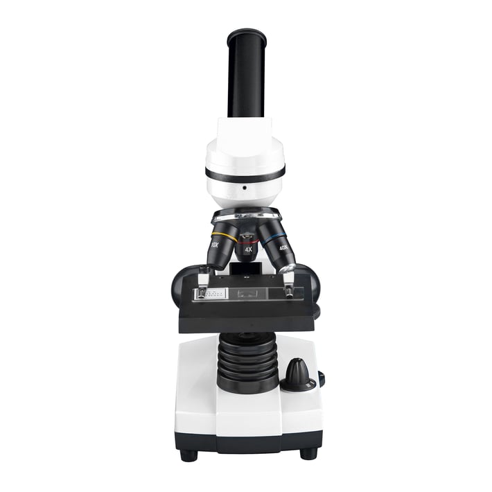 Ученическият микроскоп BRESSER JUNIOR с богата гама от аксесоари е достатъчен за начални стъпки в експериментите. С помощта на изваждаща се допълнителна леща, увеличението може да се регулира безстепенно до 2 пъти по време на визуално наблюдение, така че да се постигне увеличение от 40x до 1600x заедно с 3 обектива и 2 сменяеми широкоъгълни окуляра.