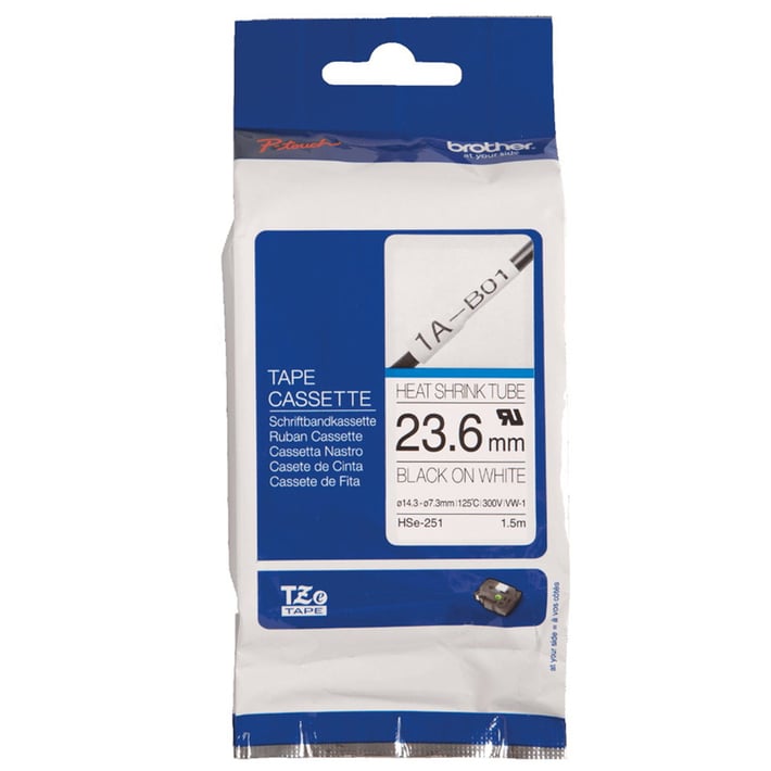 Лента Brother HSE251, термоустойчива, черен печат върху бяла лента