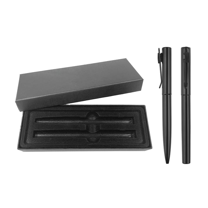 Office 1 Комплект химикалка и ролер Caligo, метални, черни