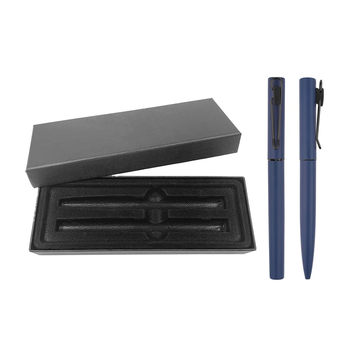 Office 1 Комплект химикалка и ролер Caligo, метални, сини