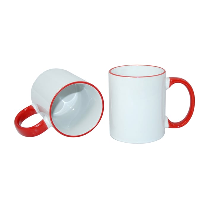 Чаша, керамична, бяла, с червена дръжка