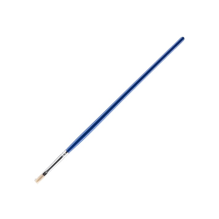 Четка за рисуване, предназначена за училищна употреба и работа с темперни бои. Изработена е с дървена дръжка и алуминиев пръстен, а плоският връх от пони косъм позволява равномерно нанасяне на боята и удобна работа при различни техники на рисуване.