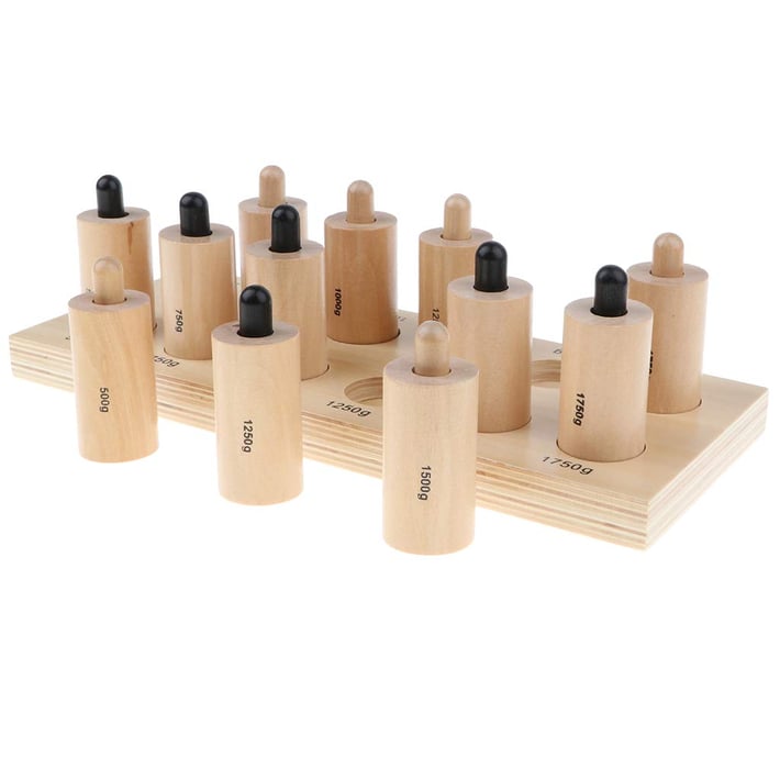 При работа с тези цилиндри децата осъзнават, че въпреки еднаквата форма на предметите, те трябва да приложат различна сила, за да натиснат дръжчицата. Освен това заниманията с този продукт развиват моториката на ръцете и пръстите.